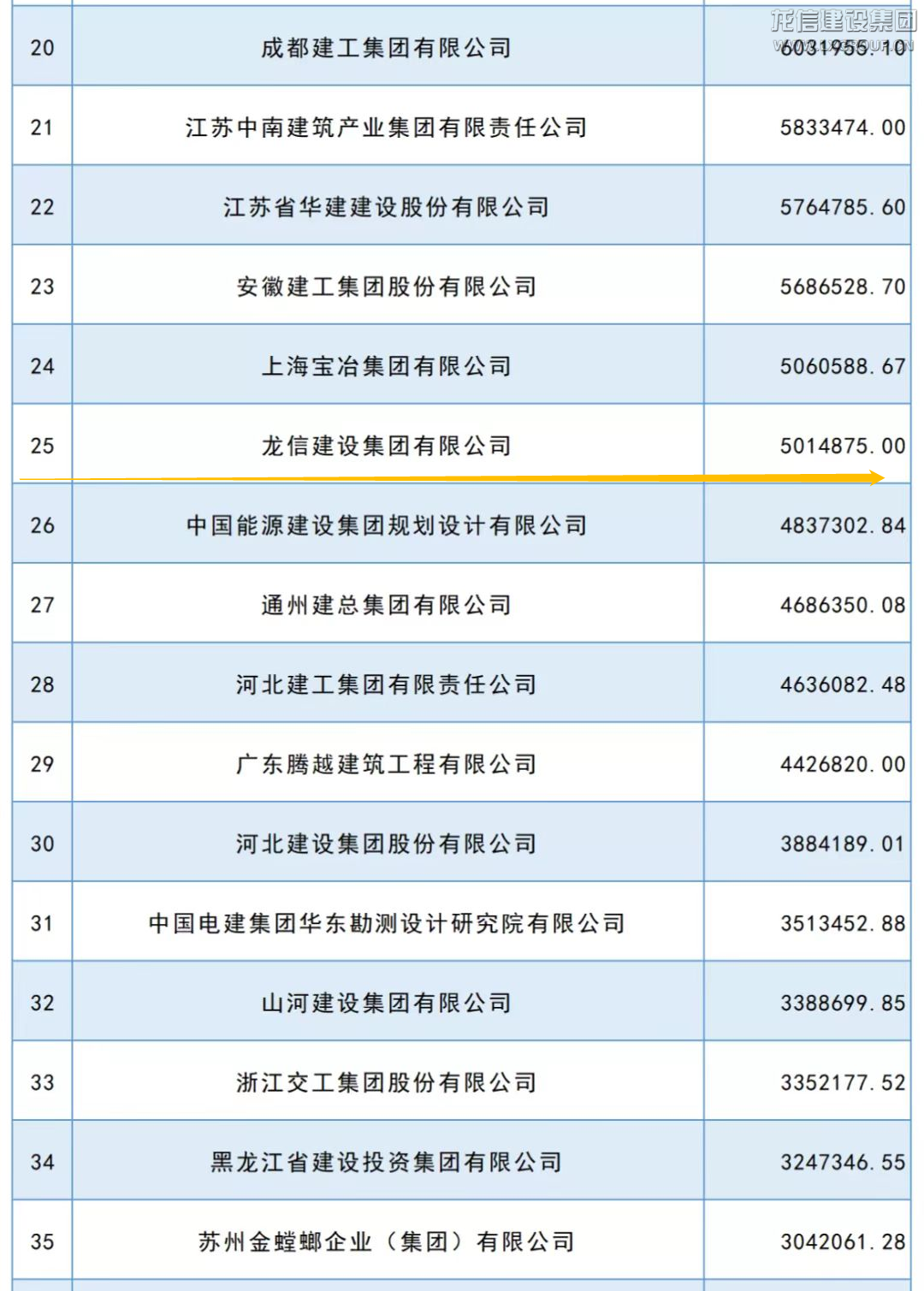龍信集團榮列2021年“中國承包商80強”第25位